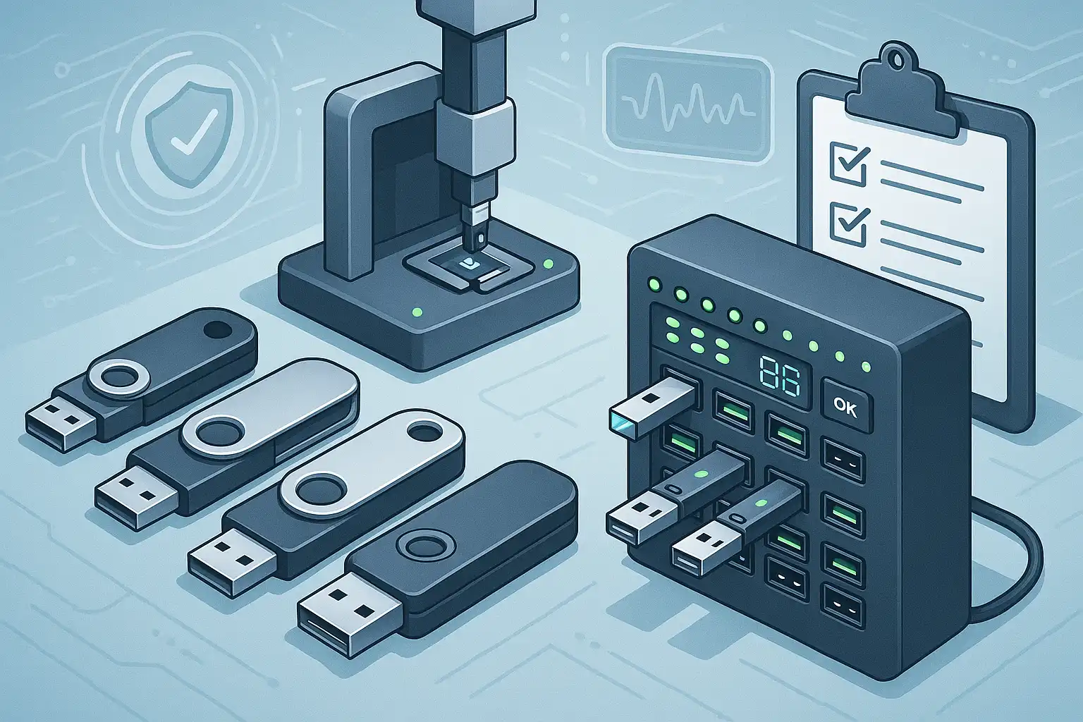 - تست رندوم و چشمی: نمونهگیری تصادفی از فلشها پس از تکثیر و بررسی دقیق محتویات آنها.