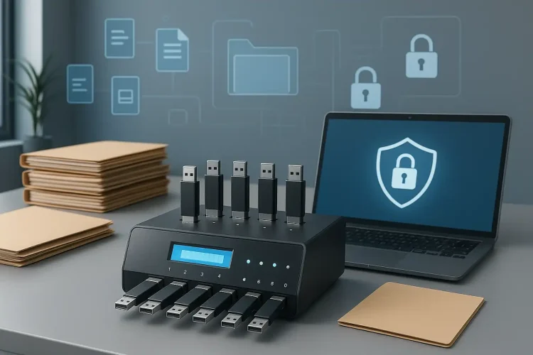 استفاده از دستگاه‌های USB duplicator برای کپی همزمان، بهره‌گیری از نرم‌افزارهای تخصصی مانند USB Image Tool، Rufus و Clonezilla، رمزگذاری با ابزارهایی چون VeraCrypt و BitLocker، و تست نهایی روی دستگاه‌های مختلف باعث تضمین کیفیت و سرعت می‌شود.